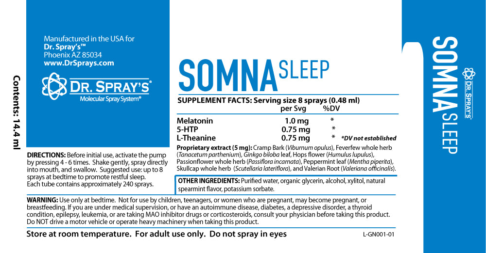 Dr. Spray’s® SOMNA sleep formula contains melatonin, the body's own sleep hormone. Use SOMNA for a good nights’ sleep, which is essential for optimal health and well-being, according to the National Sleep Foundation (NSF).